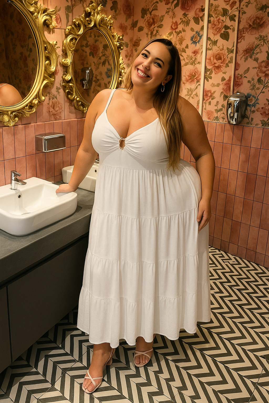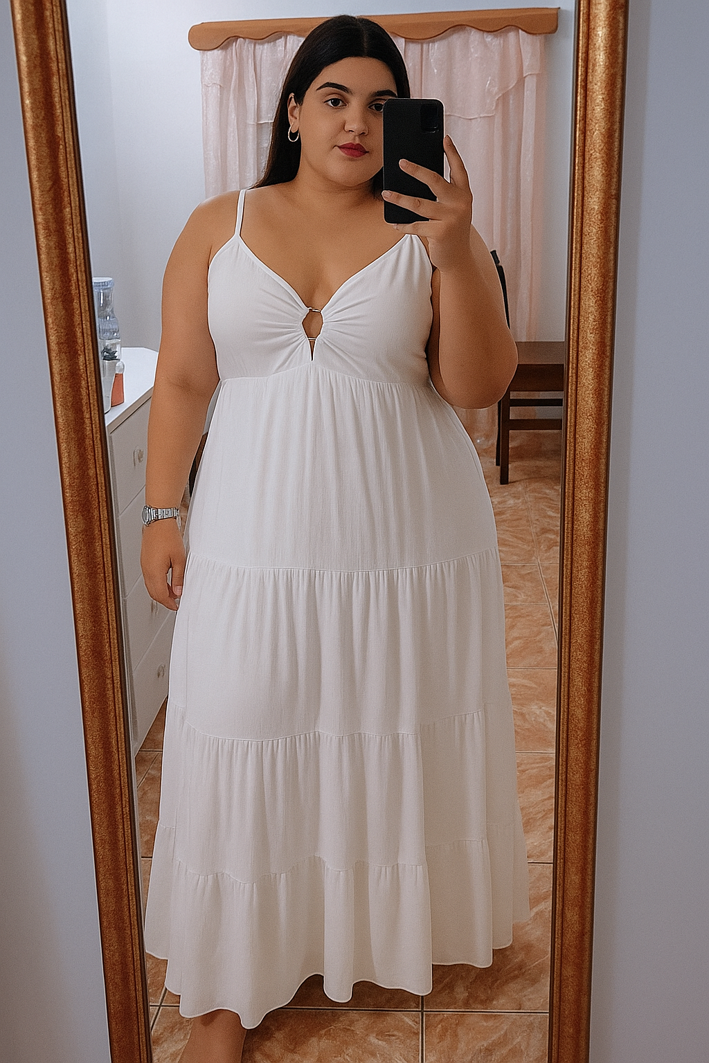 Diseñado especialmente para mujeres con curvas reales, con un estilo bohemio elegante, escote sutil con argolla metálica y una tela suave que cae como debe: sin marcar y sin limitar.